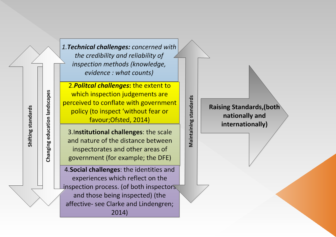 During this seminar I shall be talking about the ways in which inspection frameworks and what counts as knowledge within them, shift and change according to political, technical, institutional and social changes in the societies in which they are placed.
